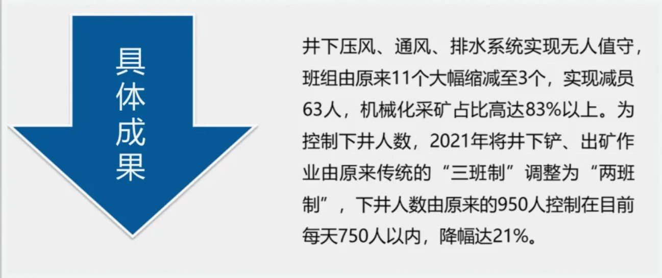 科技兴安强安,并岗减员增效。推进“机械化换人、自动化减人、智能化无人”智能化矿山建设,率先在有色金属矿山试验悬臂式掘进机取得成功,实现行业采掘技术发展新突破,开发“互联网+安全生产”项目建设,在线监测、集控操作成为日常,以技术和装备升级带动生产系统和劳动组织优化。