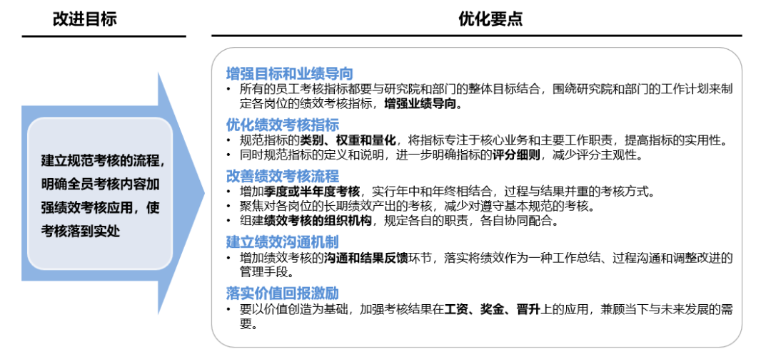 在项目实施辅导过程中,象元团队将持续收集反馈,不断优化人员管理制度和绩效考核体系,确保其始终符合研究院的发展需求。