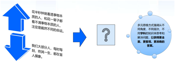 管理者需要不断培养自身的观察、分析、抽象思维的能力,从多方面、多角度认识和理解事物,不断探索事物的本质。《教父》里有句话极其经典:花半秒钟就看透事物本质的人,和花一辈子都看不清事物本质的人,注定是截然不同的命运。一眼看透本质,一语就能中的的洞察力,对大部分人来说难度系数极高,必须通过长时间的刻意练习而获得,但在这个过程中会让我们受益终生。查理芒格如是说:长久以来,我坚信存在某个系统——几乎所有人都能掌握的系统,它在你的头脑里形成一种思维模型的框架。有了那个系统之后,你就能逐渐提高对事物的认识。那个系统就是多元思维模型。多元思维方式强调从不同角度、不同层次、不同学科的知识来思考和解决问题,以获得更全面、更客观、更准确的答案。通过多元思维模型,可以根据具体的框架进行思考,让人们不再“盲人摸象”。在日常生活、工作中刻意练习多元思维方式,可以逐步提高对事物的判断分析能力,从而增强挖掘事物本质的能力。