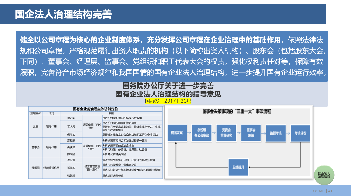 回顾国有企业治理结构的演变历程,可以发现:过去多年大部分国企党委会委员和董事会成员高度重叠,有的甚至完全一致。这种情况下,党委会前置研究某种程度上失去了本来意义,许多单位采取了"一次会议,两种记录"的方式,或者以党政联席会议代替党委会、董事会。