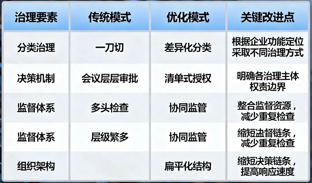 2.实施风险导向的精准监管 :改变传统全面检查模式,采用基于风险评估的精准监管,推动监管从“被动型、约束性”向“监管与服务并重”的主动型、赋能型转变,如上海市国资委的做法。