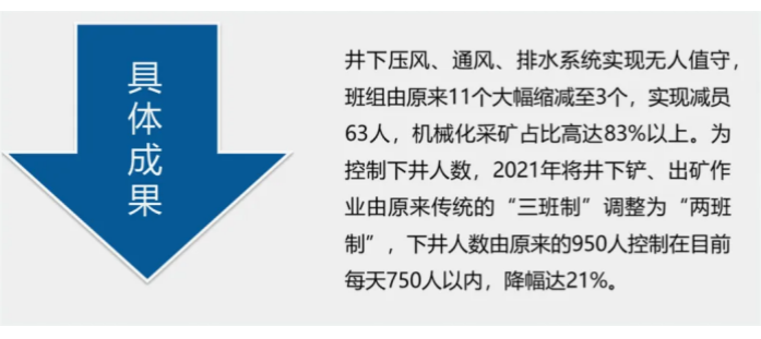科技兴安强安,并岗减员增效。推进“机械化换人、自动化减人、智能化无人”智能化矿山建设,率先在有色金属矿山试验悬臂式掘进机取得成功,实现行业采掘技术发展新突破,开发“互联网+安全生产”项目建设,在线监测、集控操作成为日常,以技术和装备升级带动生产系统和劳动组织优化。