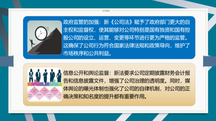 首先,新《公司法》通过完善法规体系,为政府监督提供了更为明确和有力的法律支撑。这意味着政府部门在执行监管任务时,可以更加明确自己的权力边界和职责范围,避免了监管过程中的模糊地带和争议点。